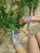 Damit die Beeren besser durchlüftet werden und ungehindert wachsen können, wird bei dichtbeerigen Trauben die untere Hälfte der Traube abgeschnitten!