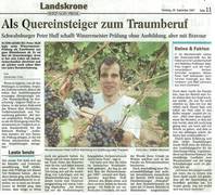 Jungwinzer Peter ist nun auch amtlich ein „Meister“ seines Faches: Im Sommer 2007 hat er seine zweijährige Ausbildung zum Winzermeister an der Weinbauschule in Oppenheim als Zweitbester seines Jahrgangs beendet.