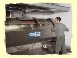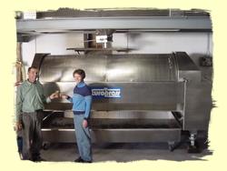 Unsere High-tech Traubenpresse keltert daraus schonend Saft.