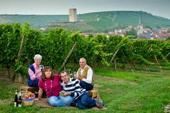 An unserem Riesling-Weinberg in Sichtweite des Schwabsburger Schlossturms bieten wir unsere frisch abgefüllten Weine zur Verkostung an.