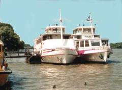 Die Personenschiffahrt Nikolay aus Budenheim steuert für größere Gruppen den Niersteiner Anlegesteg an, wo die Petershofwinzer direkt mit dem Traktor warten!